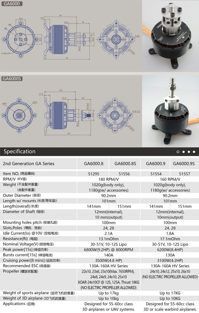Dualsky GA6000.9 V2 KV:160, 1020gr (10-12S)