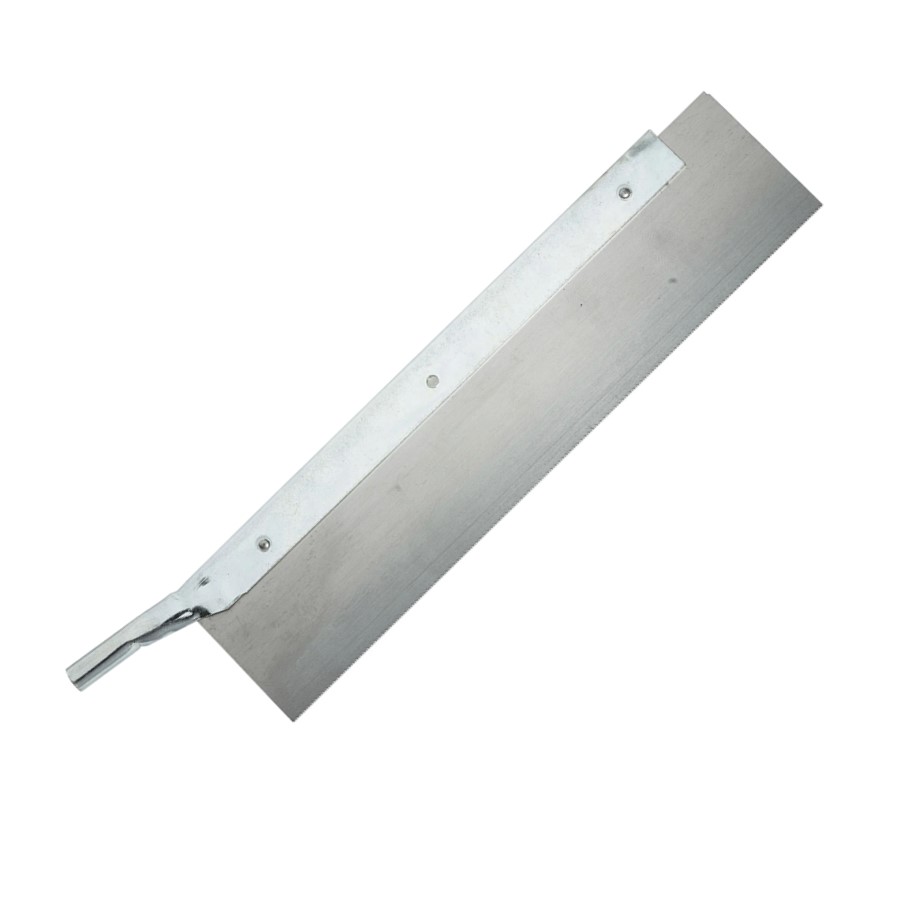 Hardened serrated steel blade with soft backer. For use on plastic, wood and soft metals.